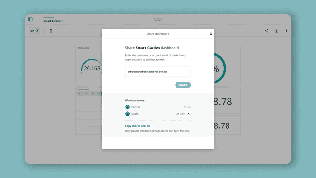 In this tutorial, we will show how to share these dashboards with other Arduino Cloud users!