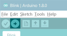 Now, simply click the "Upload" button in the environment. Wait a few seconds - you should see the RX and TX leds on the board flashing. If the upload is successful, the message "Done uploading." will appear in the status bar.