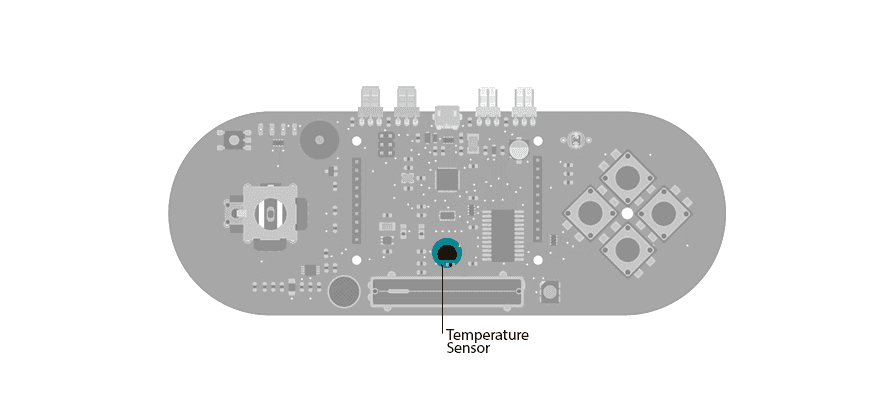 The Esplora.readTemperature() function gets the value from the temperature sensor. It will give you the temperature in degrees Celsius or degrees Fahrenheit, depending on your choice. It takes one parameter, DEGREES_C for Celsius or DEGREES_F for Fahrenheit.